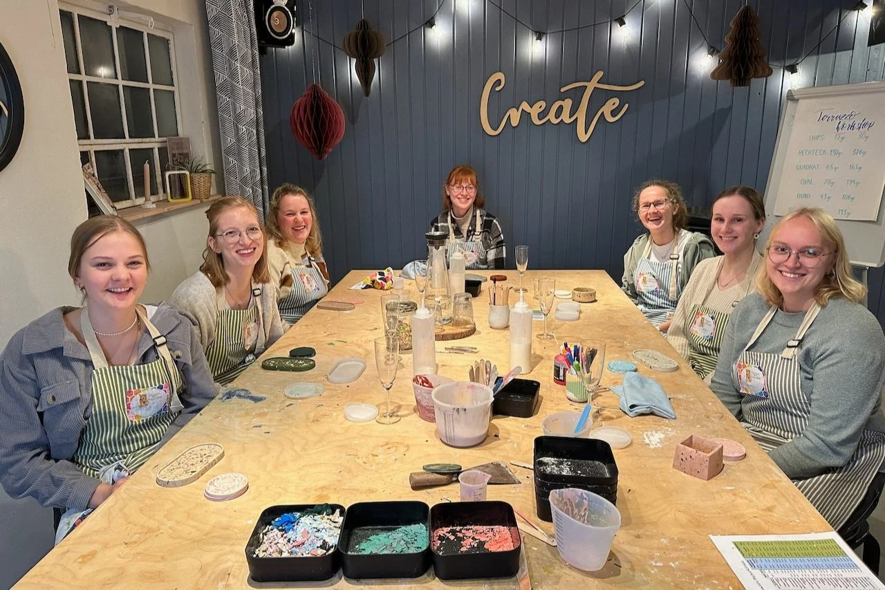 Wir gießen Formen aus Jesmonite, gestalten individuelle Dekoobjekte in Terrazzo Stil und verbringen entspannte Stunden zusammen.